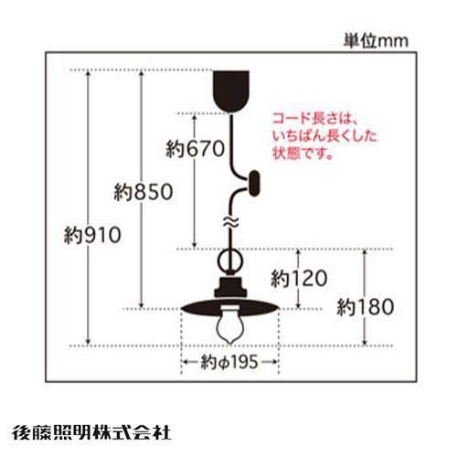 幅 φ195 × 高 120(mm) 重 約347g コード長 670(mm) 全長 850(mm)※自在によるコード調節可