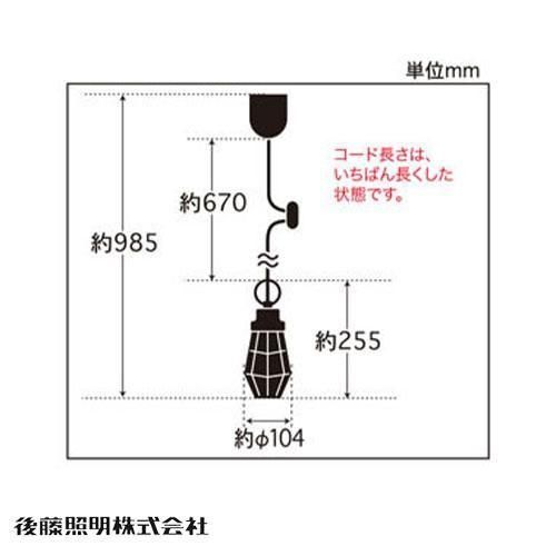 幅 φ104 × 高 255(mm) 重 約390g コード長 670(mm) 全長 985(mm)※自在によるコード調節可