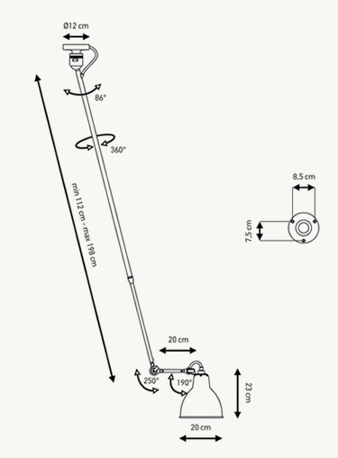 長さ112~198cm伸縮可能なアームは回転も可能。ランプシェード傾動可能です。
