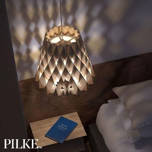 PILKE(ピルケ)」ペンダントは、天然の合板でできており、表と裏が同等のクオリティーでつくられ、製造にはネジも接着剤も一切使われていない、ぬくもりあふれるナチュラルなペンダントライトです。木を通してより明るく温かい照明の光が広がり、お部屋に美しく柔らかな影を作り出します。