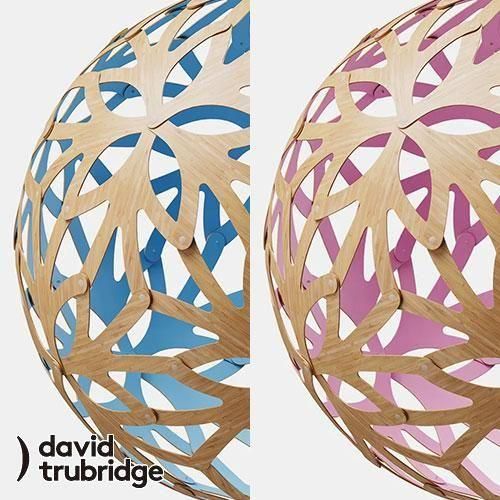 「DAVID TRUBRIGE(デイビッド・トゥルブリッジ)」のペンダントランプは竹の合板を使用したパーツを組み合わせることで、独特の幾何学的な模様のシェードとなるデザイン。シェードの内側にペイントを施しており、光を受けたシェードは塗装されたカラーによって異なった輝きを放ちます。