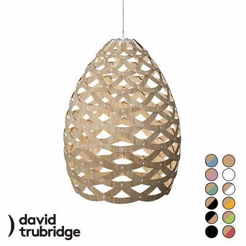 「DAVID TRUBRIGE(デビッド・トゥルブリッジ)」のペンダントランプは竹の合板を使用したパーツを組み合わせることで、独特の幾何学的な模様のシェードとなるデザイン。シェードの内側にペイントを施しており、光を受けたシェードは塗装されたカラーによって異なった輝きを放ちます。