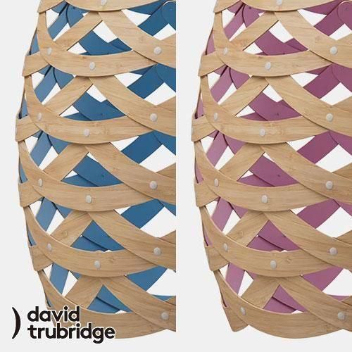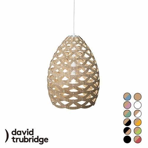 DAVID TRUBRIGE(デビッド・トゥルブリッジ)」のペンダントランプは竹の合板を使用したパーツを組み合わせることで、独特の幾何学的な模様のシェードとなるデザイン。シェードの内側にペイントを施しており、光を受けたシェードは塗装されたカラーによって異なった輝きを放ちます。