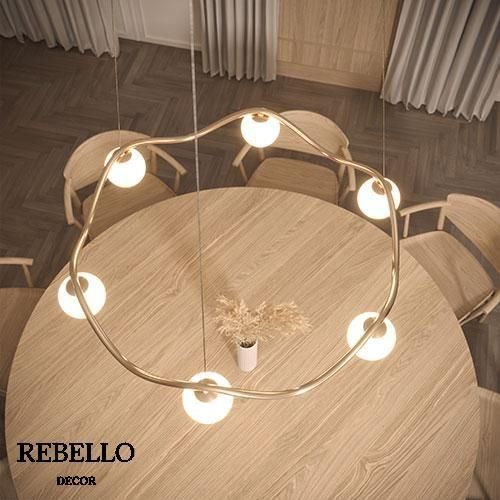 非常に印象的なシャンデリア「Circle of life(サークル オブ ライフ)」は 、動きの美しさを体現しているシャンデリア。有機的で流れるような金属フレームは、高級感のある真鍮で仕上げられています。自然の波を模倣した構造は、あらゆる空間に彫刻的で芸術的なタッチを加えます。5つの球状のフロストガラス球が、温かく拡散した光を放ち、柔らかく心地よい雰囲気を演出します。