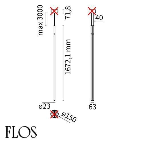 幅 63 × 奥行 φ23 × 高 1,672(mm) 全長 4,500(mm) 重 3.1kg(※別売りフランジ含む) |