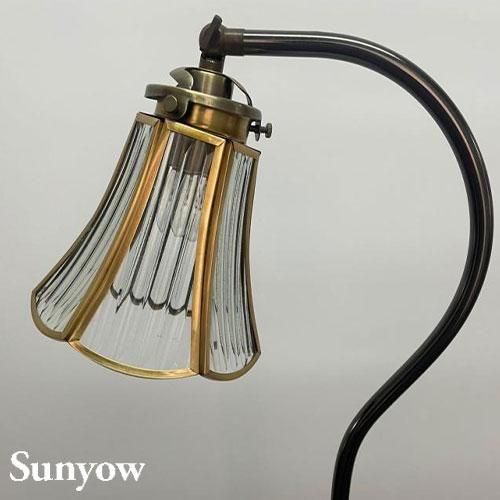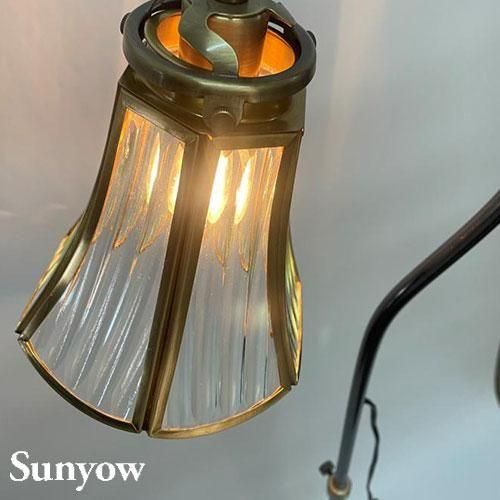 ヨーロッパで1930年代から40年代にかけて製造されていた製品をモチーフとしたアンティーク調の照明器具の製造販売を展開する「SUNYOW(サンヨウ)」のフロアランプ。スタンド自体の高さの調節や、シェードの位置を動かせるため、場所によってお好みのスタイルでご使用がいただけます。手作りならではの美しいカットが特徴的なガラスシェードは想像力をくすぐるような独特のカットが施されたデザインが印象的。さらに映し出される光の模様も楽しめる照明です。
