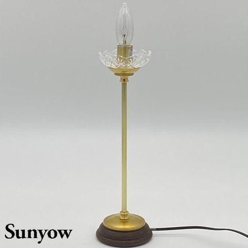 ヨーロッパで1930年代から40年代にかけて製造されていた製品をモチーフとしたアンティーク調の照明器具の製造販売を展開する「SUNYOW(サンヨウ)」のテーブルランプ。手作りならではの美しいカットが特徴的ガラスシェードは想像力をくすぐるような独特のカットが施されたデザインが印象的。さらに映し出される光の模様も楽しめる照明です。