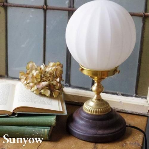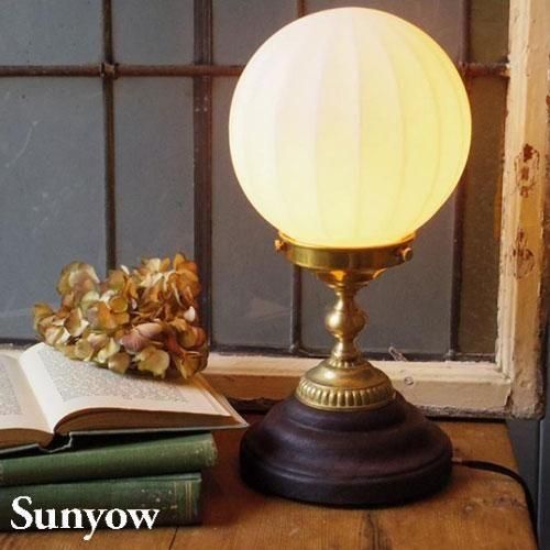ヨーロッパで1930年代から40年代にかけて製造されていた製品をモチーフとしたアンティーク調の照明器具の製造販売を展開する「SUNYOW(サンヨウ)」のテーブルランプ。手作りならではの美しいカットが特徴的なガラスシェードは想像力をくすぐるような独特のカットが施されたデザインが印象的。さらに映し出される光の模様も楽しめる照明です。
