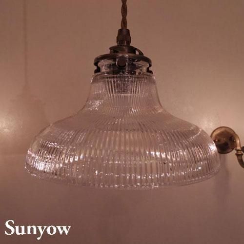 ヨーロッパで1930年代から40年代にかけて製造されていた製品をモチーフとしたアンティーク調の照明器具の製造販売を展開する「SUNYOW(サンヨウ)」のガラスペンダント。手作りならではの美しいカットが特徴的ガラスシェード。素材には無垢の真鍮をふんだんに使用し、あえて防錆加工を施さない事で時間と共に変化するその味わい深い風合いをお楽しみ頂けます。また独自のアンティーク加工が施してあり、お手元に届いた時点でその長い時間を経たかのような風合いにてご使用頂けます。
