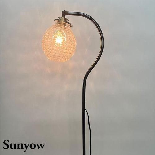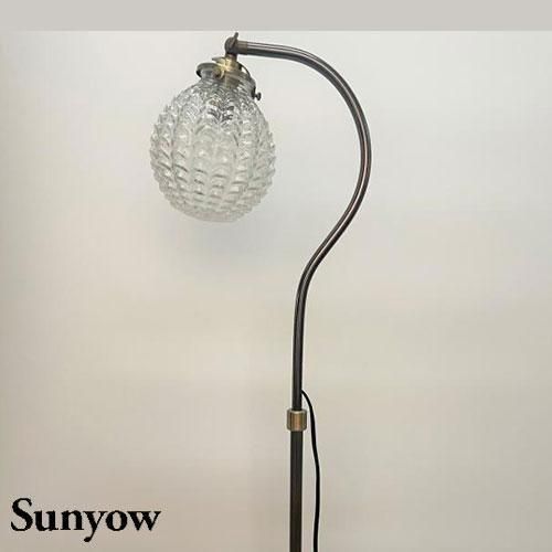 ヨーロッパで1930年代から40年代にかけて製造されていた製品をモチーフとしたアンティーク調の照明器具の製造販売を展開する「SUNYOW(サンヨウ)」のフロアランプ。スタンド自体の高さの調節や、シェードの位置を動かせるため、場所によってお好みのスタイルでご使用がいただけます。手作りならではの美しいカットが特徴的ガラスシェードは想像力をくすぐるような独特のカットが施されたデザインが印象的。さらに映し出される光の模様も楽しめる照明です。
