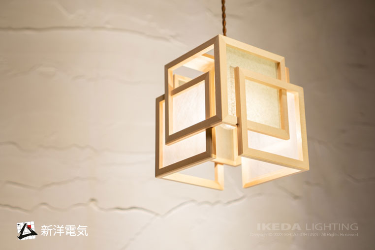 木と和紙のシンプルなフォルムが空間に品格と落ち着きをもたらす「新洋電気」のオリジナルの照明です。